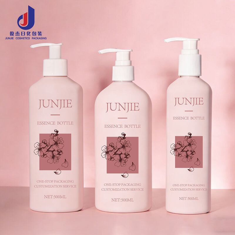 शैम्पू, लोशन और विभिन्न कॉस्मेटिक उत्पादों के लिए डिज़ाइन की गई 500ml और 300ml प्लास्टिक पंप बोतलें।